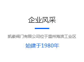 凱豪閥門有限公司位于溫州海濱工業區,企業占地面積20000平方米。初建于 1985 年,注冊資金5008萬;工廠主要生產 ANSL、JIS、DIN 和 GB 標準的閘閥、截止閥、止回閥、球閥、蝶閥、